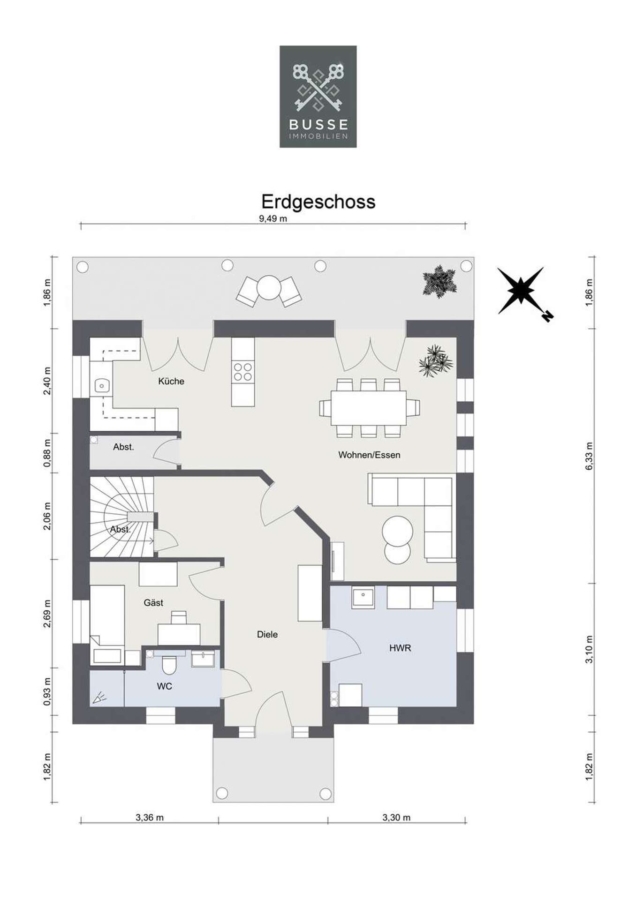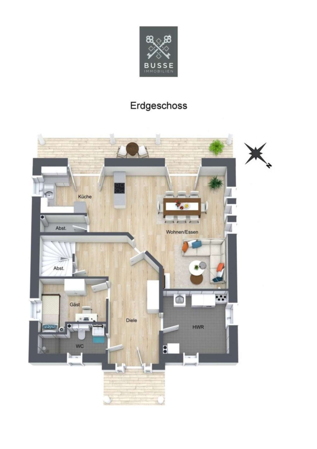Alle Angaben sind ohne Gewähr und basieren ausschließlich auf Informationen, die uns von unserem Auftraggeber übermittelt wurden. Wir übernehmen keine Gewähr für die Vollständigkeit, Richtigkeit und Aktualität dieser Angaben. Zwischenverkauf bleibt vorbehalten. Sollte das von uns nachgewiesene Objekt bereits bekannt sein, teilen Sie uns dieses bitte unverzüglich mit. Die Weitergabe dieses Exposees an Dritte ohne unsere Zustimmung löst gegebenenfalls Courtage- bzw. Schadensersatzansprüche aus. Im Übrigen gelten die beigefügten allgemeinen Geschäftsbedingungen für die Rechtsbeziehung zwischen Ihnen und Busse-Immobilien.