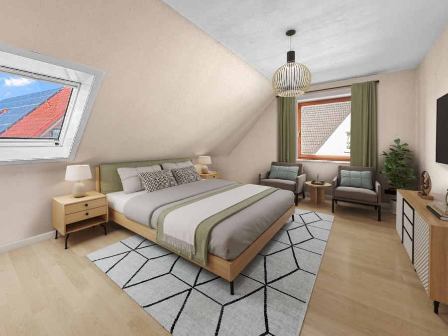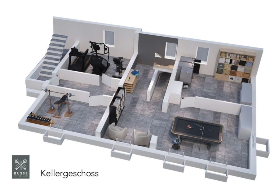 Der nicht ausgebaute Dachboden bietet zusätzlichen Stauraum, während der voll unterkellerte Bereich mit Außenzugang vielfältige Nutzungsmöglichkeiten eröffnet: ob Hobbyraum, Werkstatt, Fitnessbereich, Gäste- oder Jugendzimmer – Ihrer Fantasie sind keine Grenzen gesetzt. Die moderne Buderus-Gastherme sorgt für angenehme Wärme über die Fußbodenheizung. Praktisch: Von hier gelangen Sie direkt in die Doppelgarage mit zwei weiteren Stellplätzen – trockenen Fußes, auch bei schlechtem Wetter.