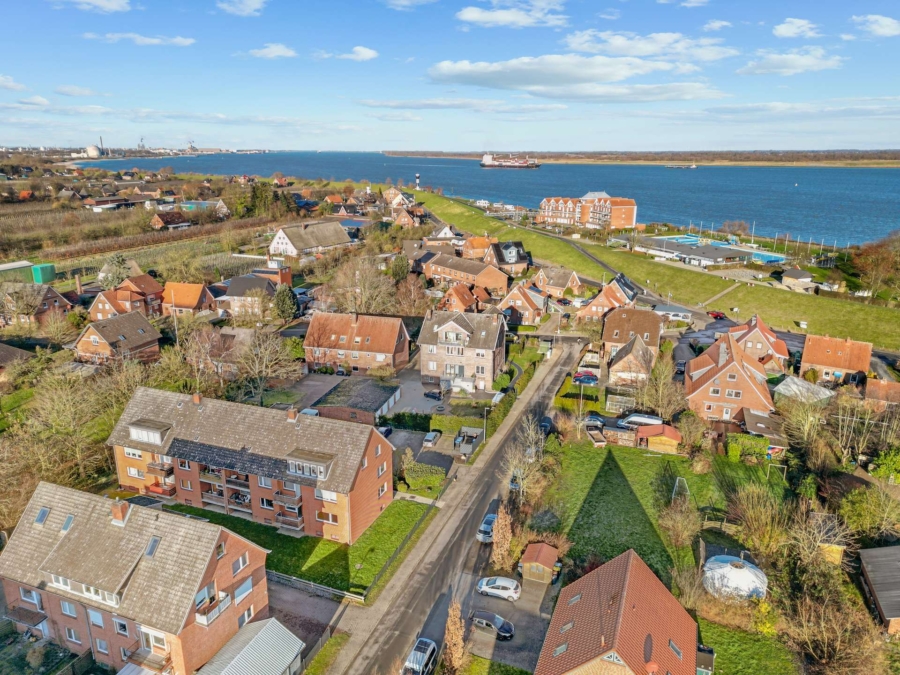 Die Immobilie selbst befindet sich in einer ruhigen Nebenstraße, fernab von Durchgangsverkehr. Genau diese Lage sorgt für ein angenehmes Wohnumfeld und macht das Objekt für Mieter besonders attraktiv. Wer hier wohnt, entscheidet sich bewusst für ein entspanntes, entschleunigtes Lebensumfeld mit hoher Aufenthaltsqualität. Spaziergänge oder Fahrradtouren auf dem Deich, der Blick über die Elbe, kurze Wege ins Grüne. All das gehört hier zum Alltag.